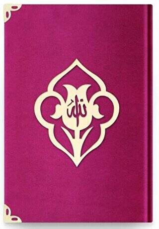 Çanta Boy Kadife Kuran-ı Kerim (Fuşya Pembe, Güllü, Mühürlü) - B6 Fuşya Pembe