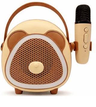 Çocuklara Özel Retro Tasarımlı Bluetooth Karaoke Mikrofon ve Ahşap Tripod Kahverengi