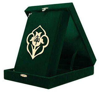 Kadife Kutulu Kur`an-ı Kerim Çanta Boy, Güllü, Yeşil