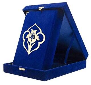 Kadife Kutulu Kur`an-ı Kerim Hafız Boy, Güllü, Koyu Mavi