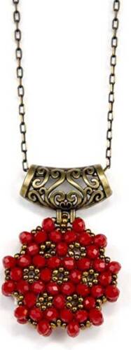 Bordo Cevşen Kolye Kristal, Yuvarlak