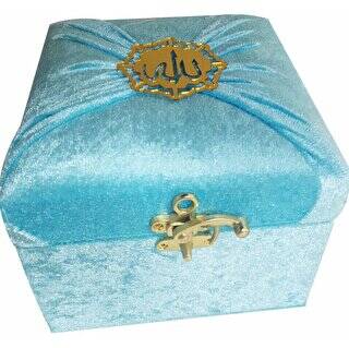 M285M - Mühürlü Cep Boy Kadife Sandıklı Mealli Kuran-ı Kerim - Mavi