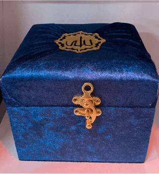 M285PM - Mühürlü Cep Boy Kadife Sandıklı Mealli Kuran-ı Kerim-Petrol Mavisi