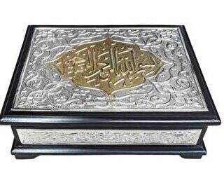 Kur`an Cildi: Suni deri üzeri Yaldızlı Gümüş Nikel karışımlı levha